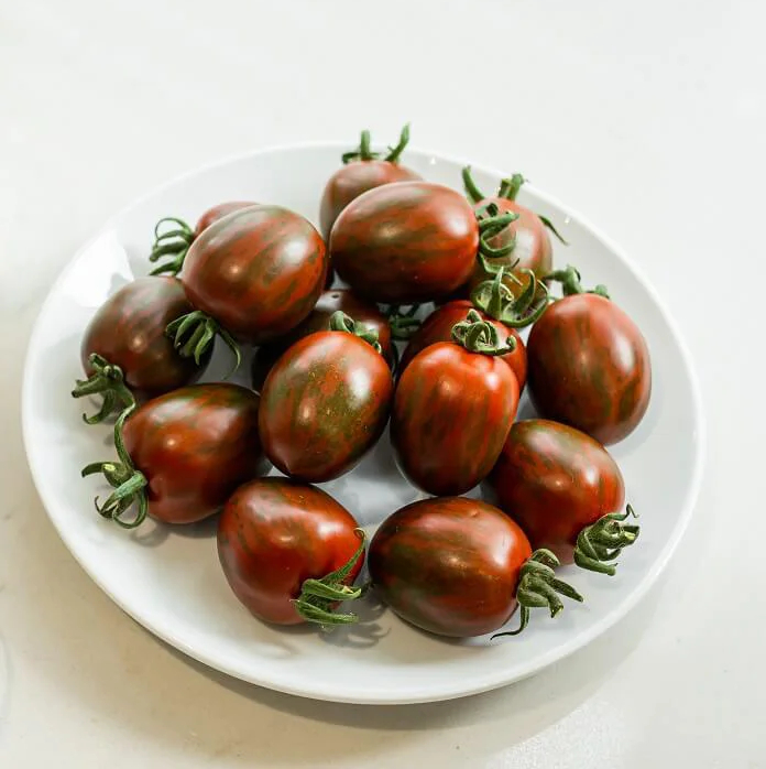 Cà Chua Bi Socola có đường kính vỏn vẹn chỉ 1.5cm và có lớp vỏ màu nâu bên ngoài giống màu socola. Khác với những loại cà chua truyền thống khác, cà chua bi socola có hương vị rất đậm đà và vị ngọt thanh vô cùng đặc biệt. Giống cà chua này thường chứa hàm lượng chất chống oxy hóa cao hơn các loại khác, có tác dụng hạn chế các bệnh tim mạch. Hơn nữa còn làm chậm quá trình hình thành tế bào ung thư nên rất nhiều chị em săn đón… Em nó thường dùng để ăn sống như làm các món salad hoặc ăn thay thế trái cây.